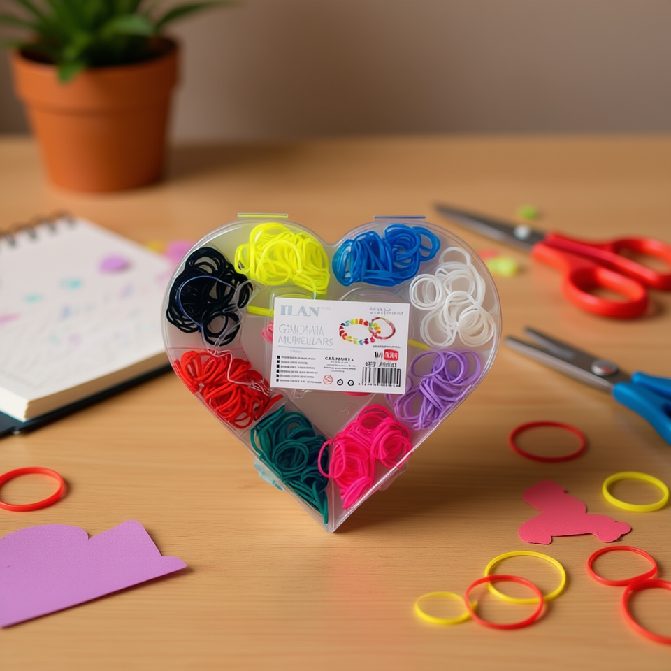 Ilan Goma Manualidades Scatola di 500 Elastici per Artigianato a Forma di Cuore 7cm