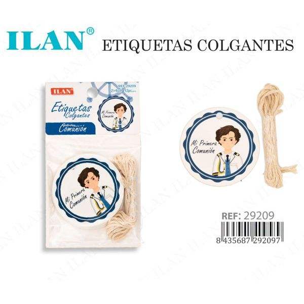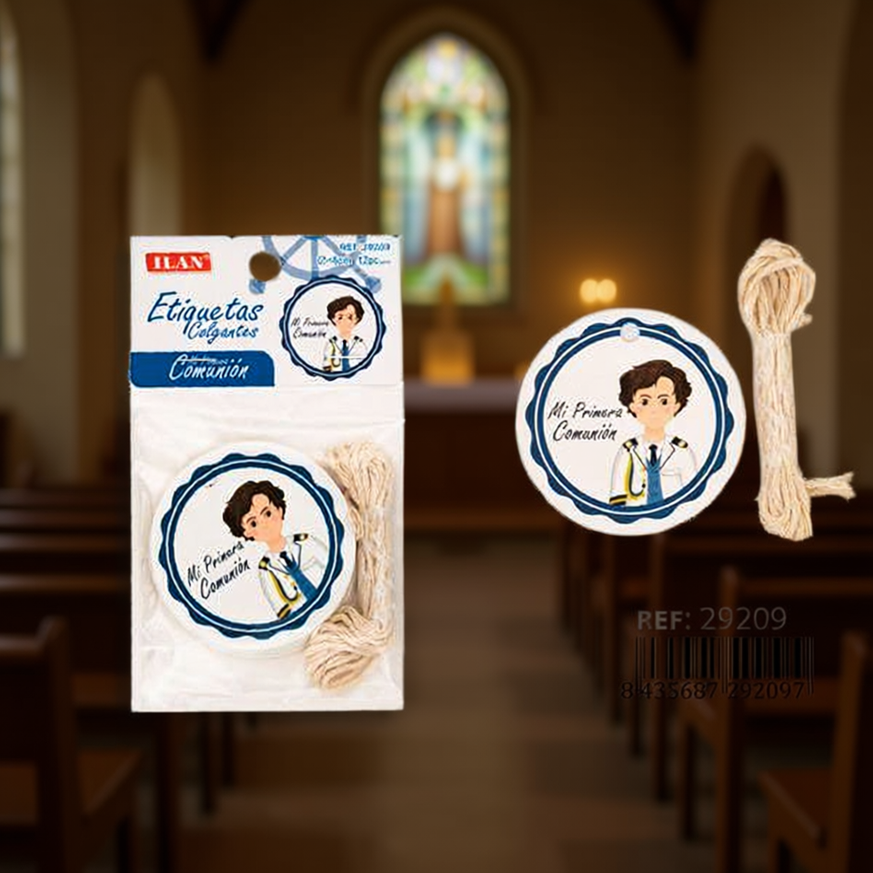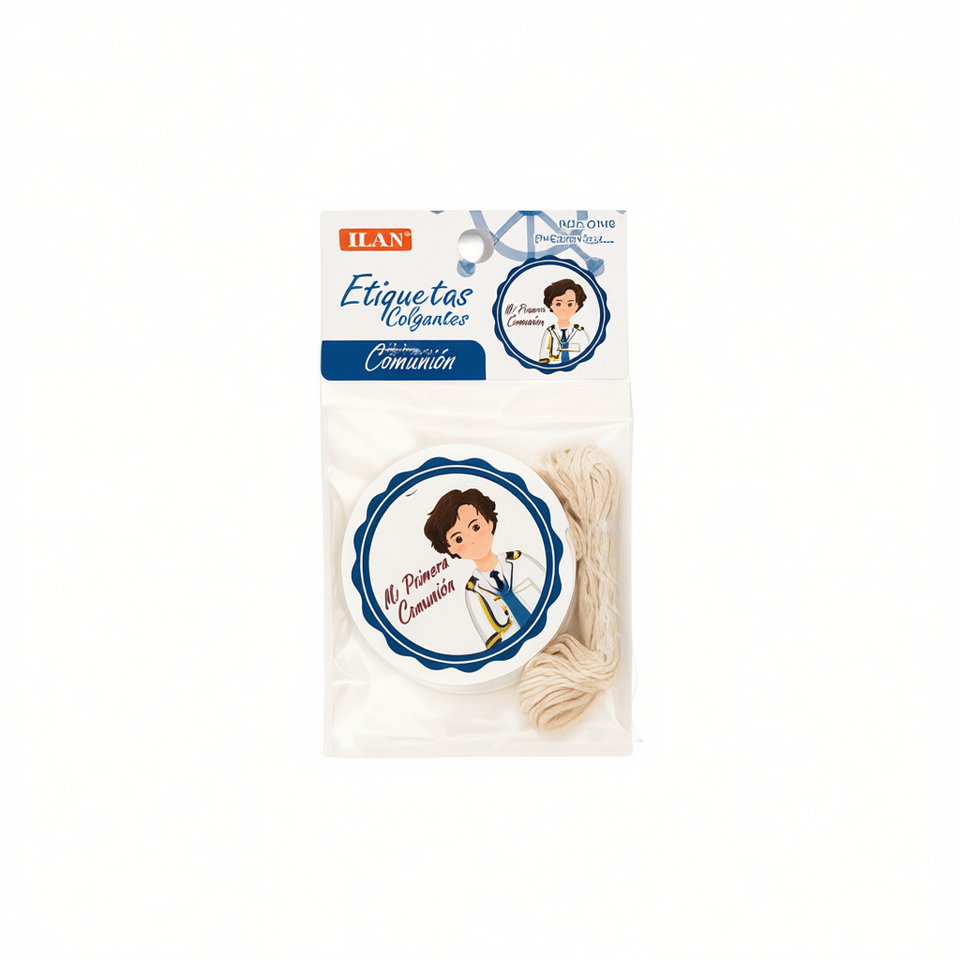 Etichette Pendenti Ilan per Prima Comunione, Design per Ragazzi con Cordoncino 29209