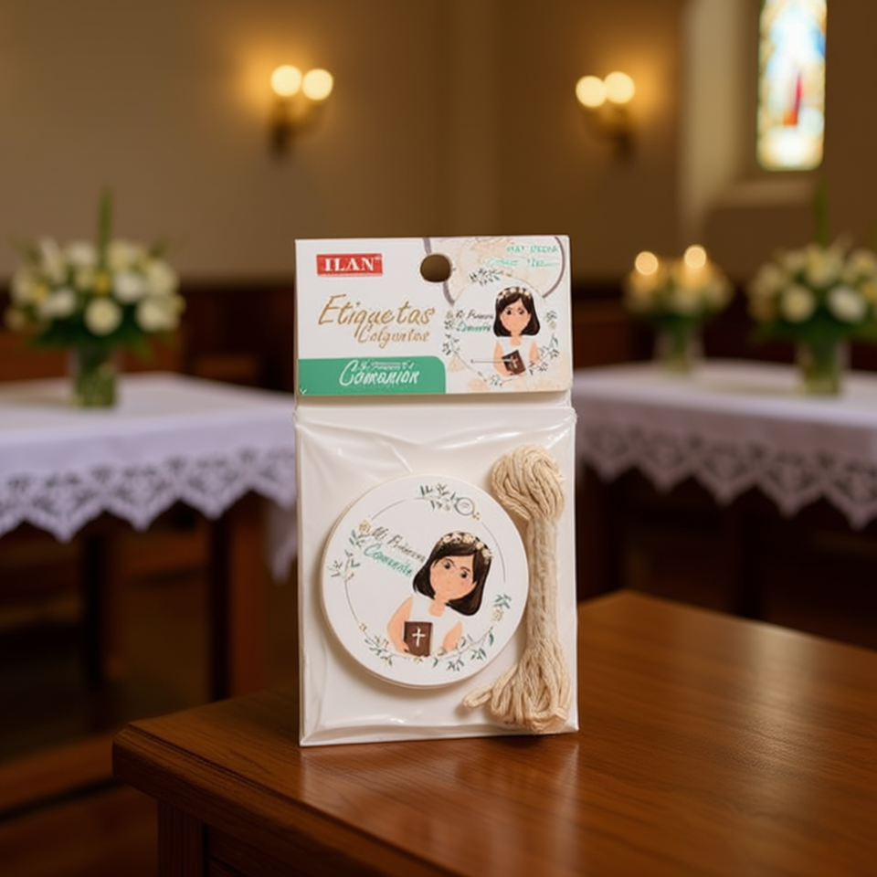 Etichette pendenti Ilan con design per la Prima Comunione, con cordino per regali e decorazioni