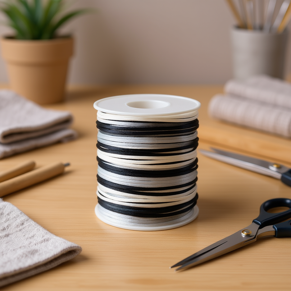 Filo per Cucito a Punto Rattail 1.5mm 50m Tinto in Sezioni Nero Bianco Grigio