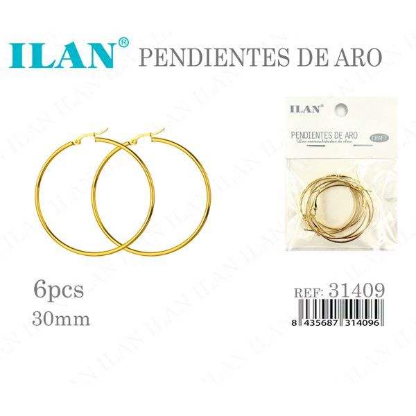 Orecchini a cerchio Ilan 30mm color oro 6 pezzi