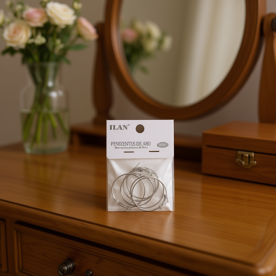 Orecchini a Cerchio Ilan 30mm Colore Argento Confezione da 6 Pezzi