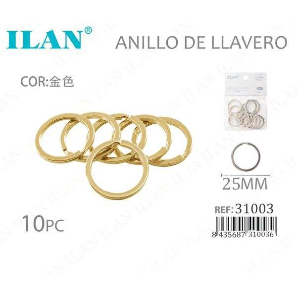 Portachiavi Ilan 25 mm color oro, confezione da 10 pezzi