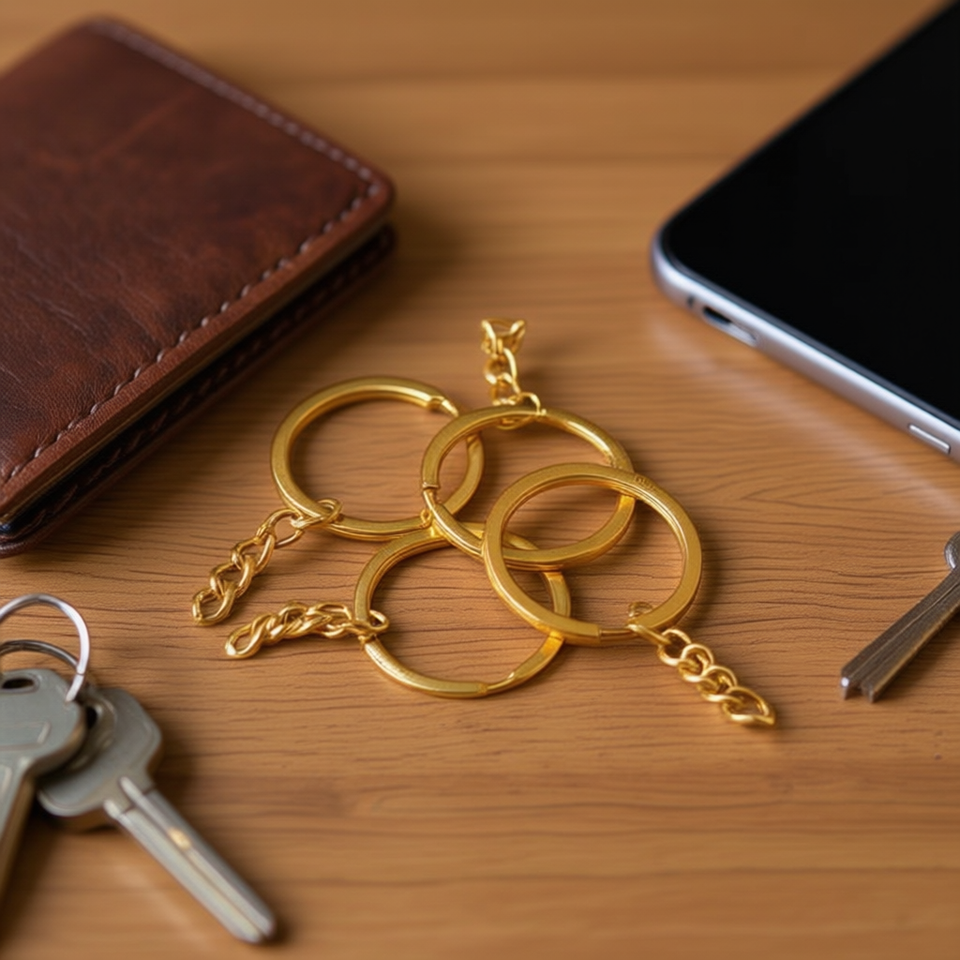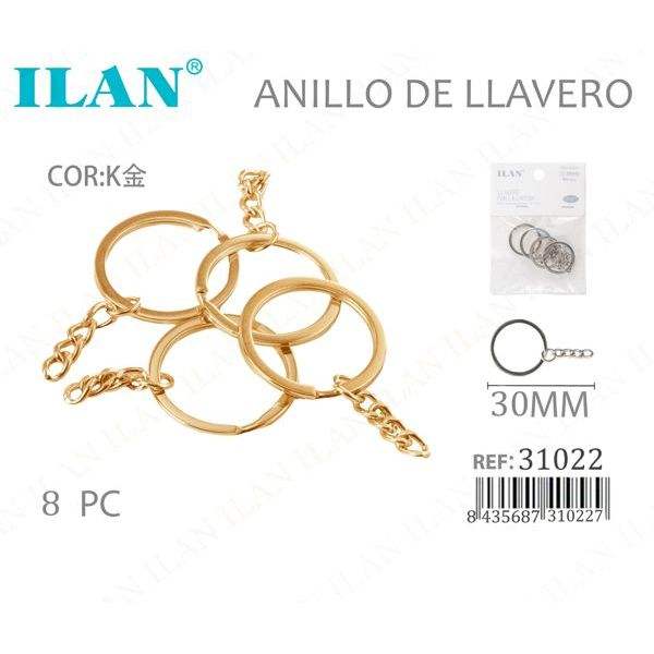 Portachiavi Ilan con Catena in Oro 30mm, Set da 8 Pezzi