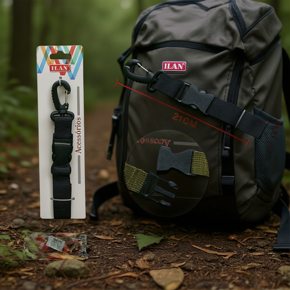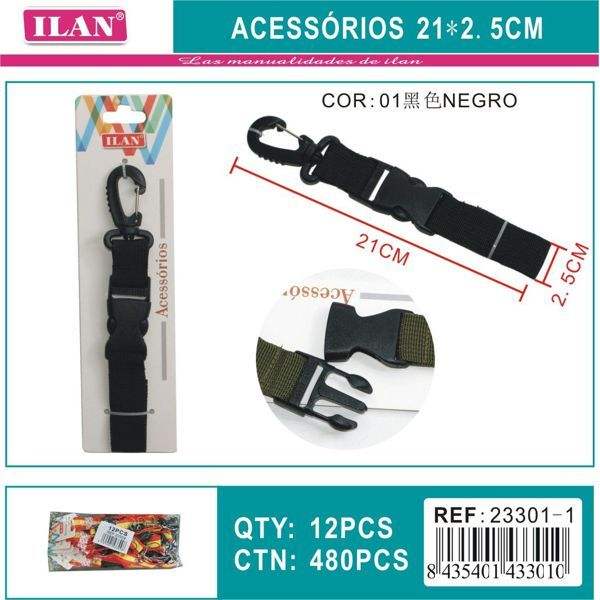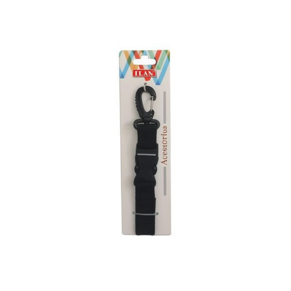 Portachiavi Ilan 21x2,5 cm in nylon nero con moschettone per chiavi e accessori