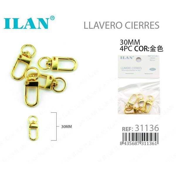 Lucchetti portachiavi ILAN 30 mm color oro, set da 4 pezzi per borse e accessori