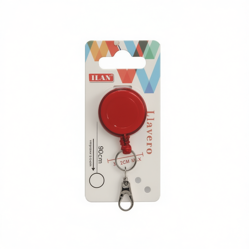 Portachiavi Ilan con cordino estensibile 90 cm max, colore rosso, cordino retrattile per chiavi e tessere identificative