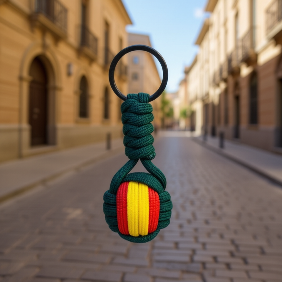 Portachiavi Ilan con Sfera da 30mm, Cordino Verde Scuro e Design Bandiera Spagnola