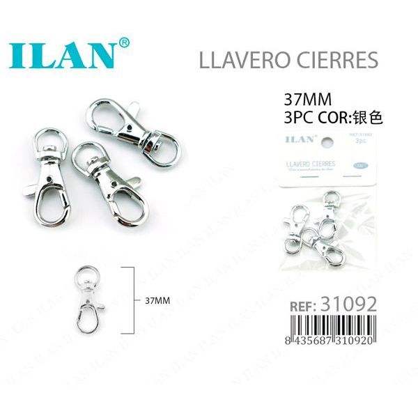 Gancio portachiavi Ilan 37 mm colore argento confezione da 3 pezzi