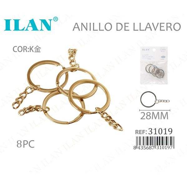 Portachiavi Ilan con catena in oro K 28 mm per chiavi e accessori