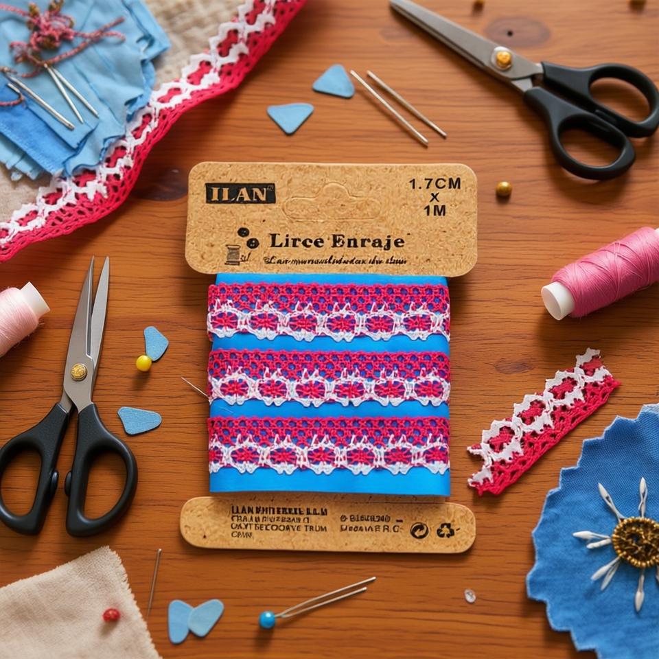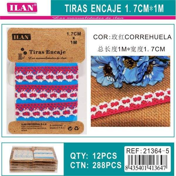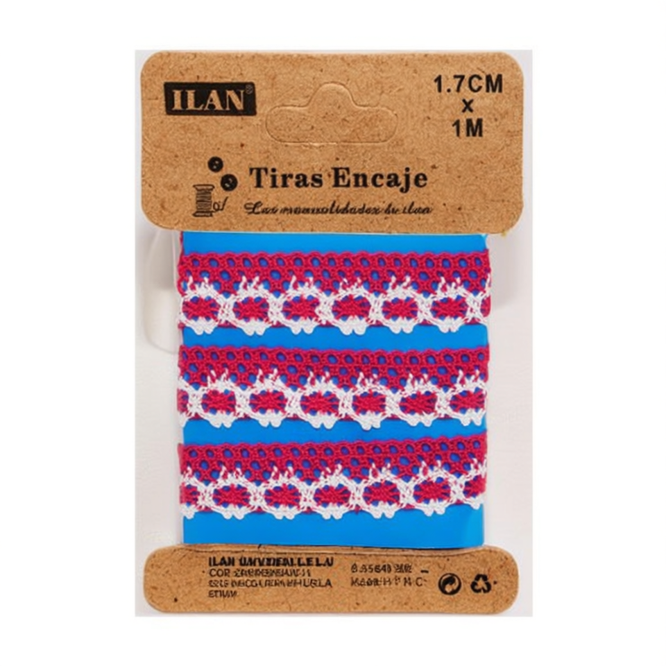 Nastro in pizzo Ilan 1,7 cm x 1 m rosa rosso blu, decorativo per cucito e progetti fai da te