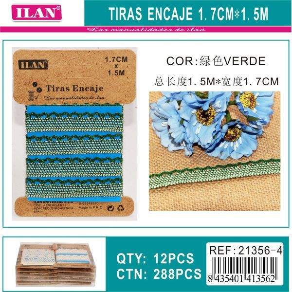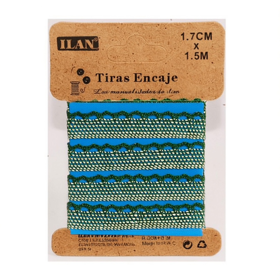 Nastro in Pizzo Ilan 1,7 Cm X 1,5 M Verde per Decorazioni Artigianali