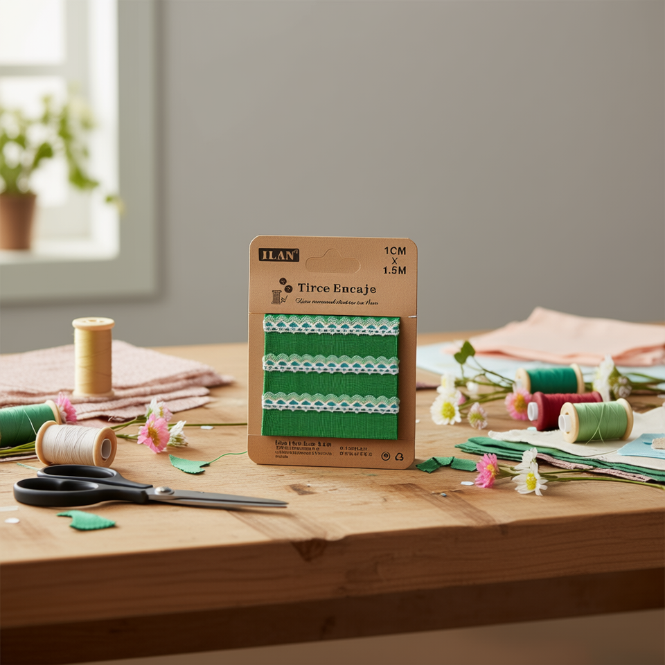 Cinghie in pizzo Ilan 1 cm x 1,5 m verdi per artigianato e cucito