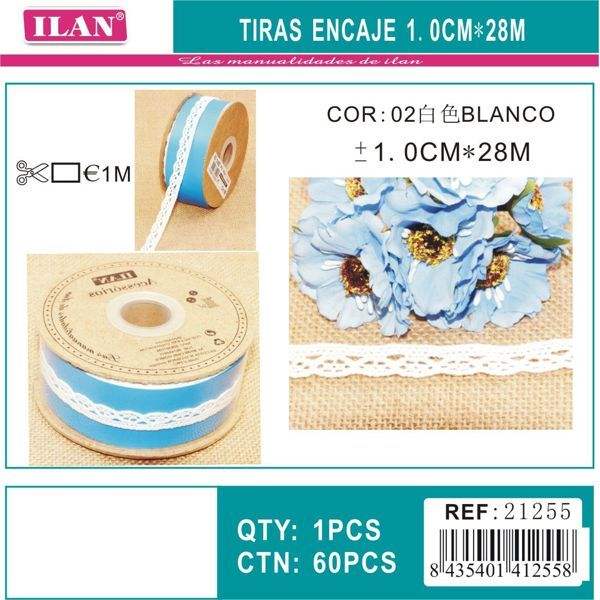 Strisce di pizzo Ilan 1,0 cm x 28 m bianche per artigianato e decorazioni