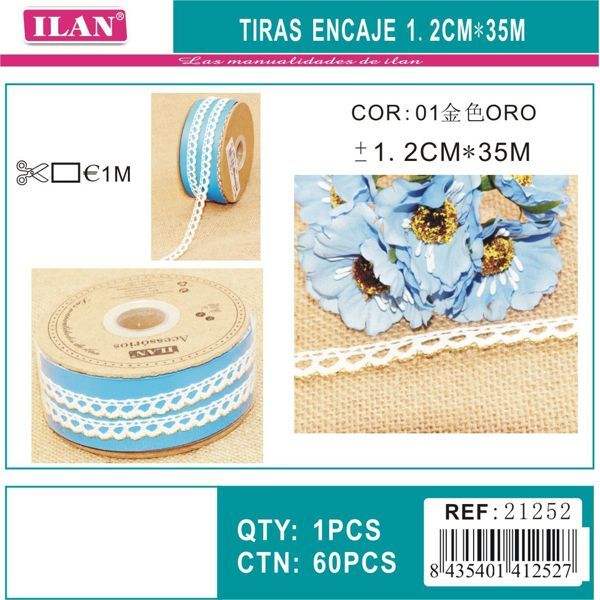 Strisce di pizzo Ilan 1,2 cm x 35 m colore oro per artigianato e decorazioni