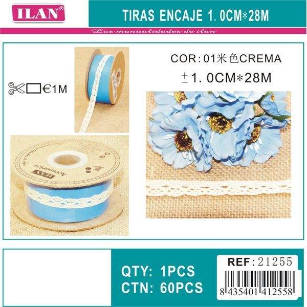 Strisce di Pizzo Ilan 1 Cm X 28 M Colore Crema per Forniture Artigianali