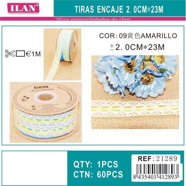 Strisce di pizzo Ilan 2 cm x 23 m gialle per artigianato e decorazioni