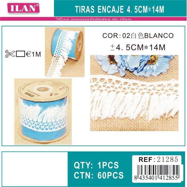 Strisce di pizzo Ilan 4,5 cm x 14 m, bordo con frange bianche per decorazioni artigianali