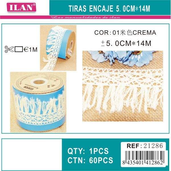 Strisce di pizzo Ilan 5,0 cm x 14 m colore crema per artigianato e decorazioni