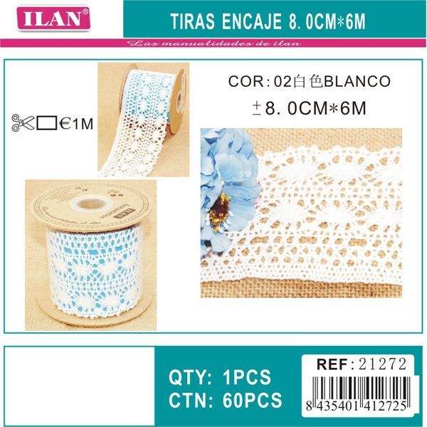 Strisce di pizzo Ilan 8,0 cm x 6 m bianche per artigianato e decorazioni