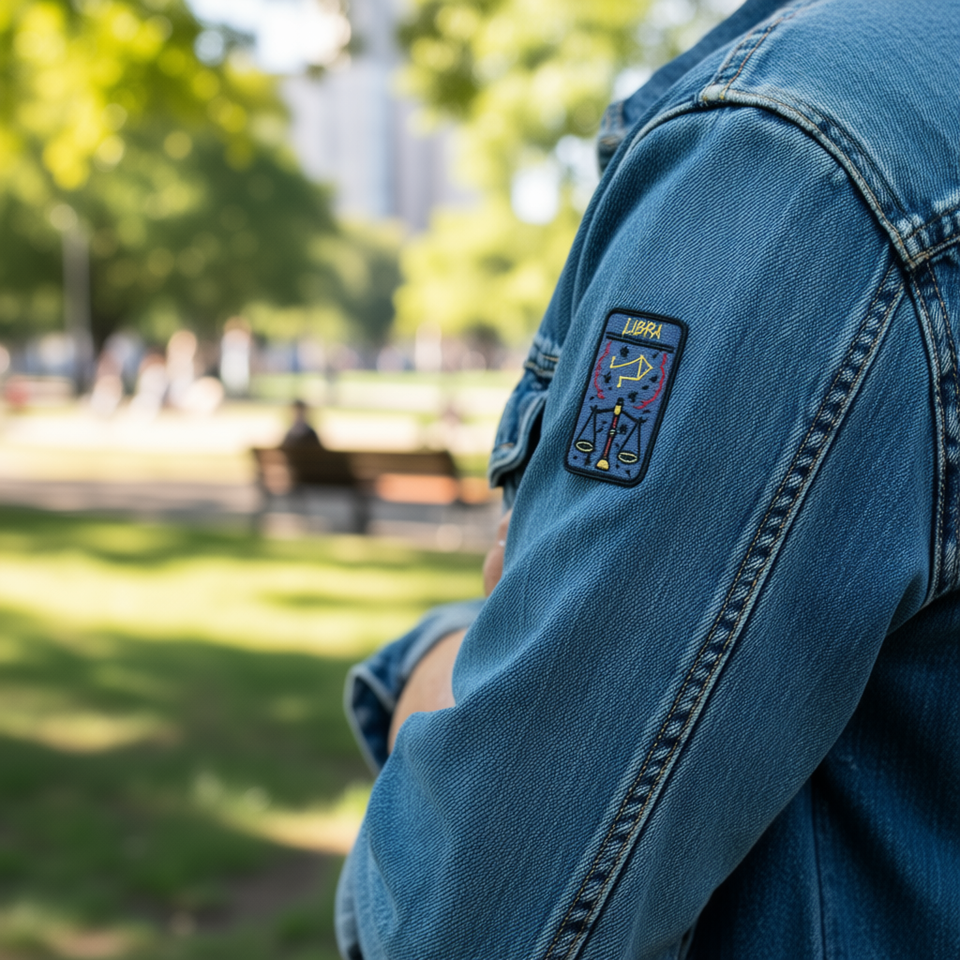 Toppa in tessuto con simbolo Libra di Ilan, 8x5 cm, termoadesiva, ricamata, per accessori di abbigliamento