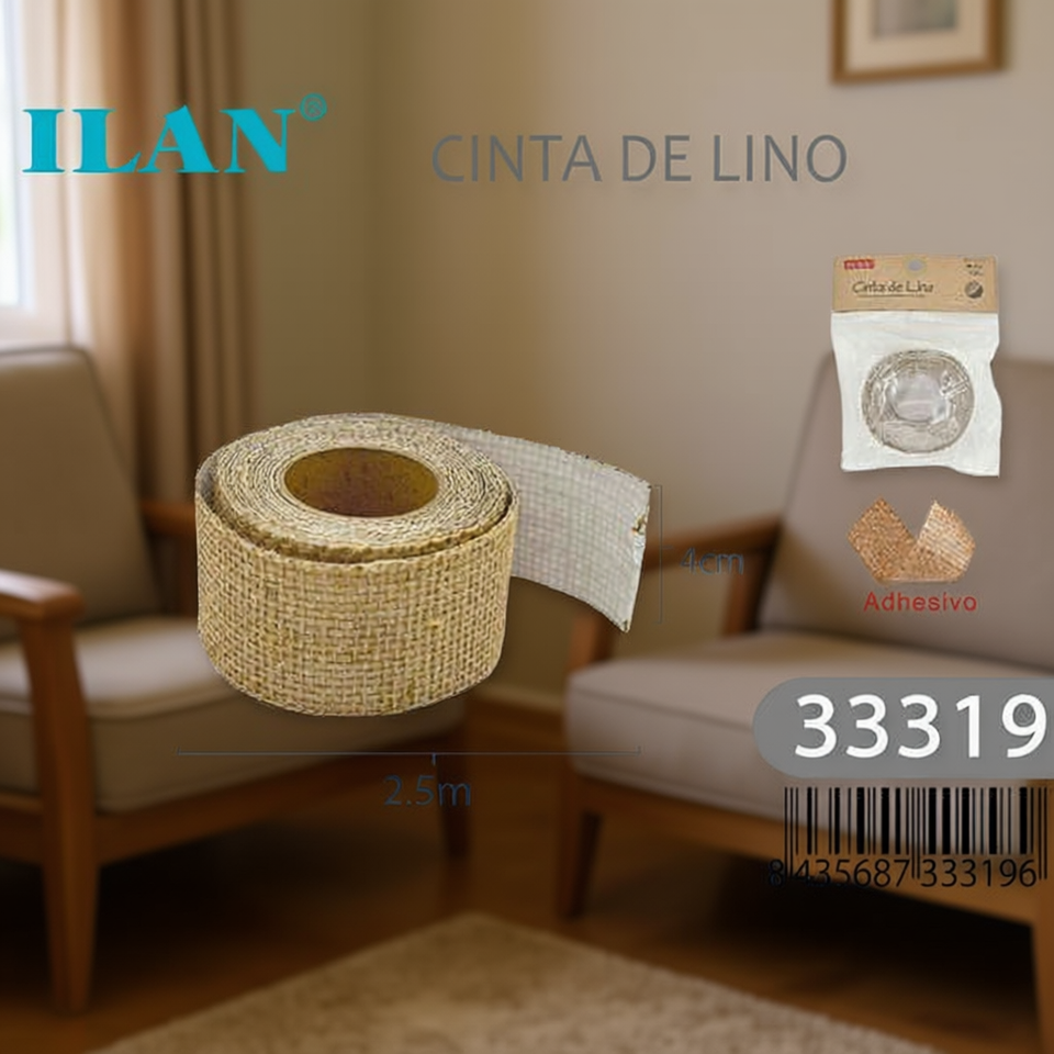 Nastro in lino Ilan 2,5 m x 4 cm adesivo per decorazioni domestiche