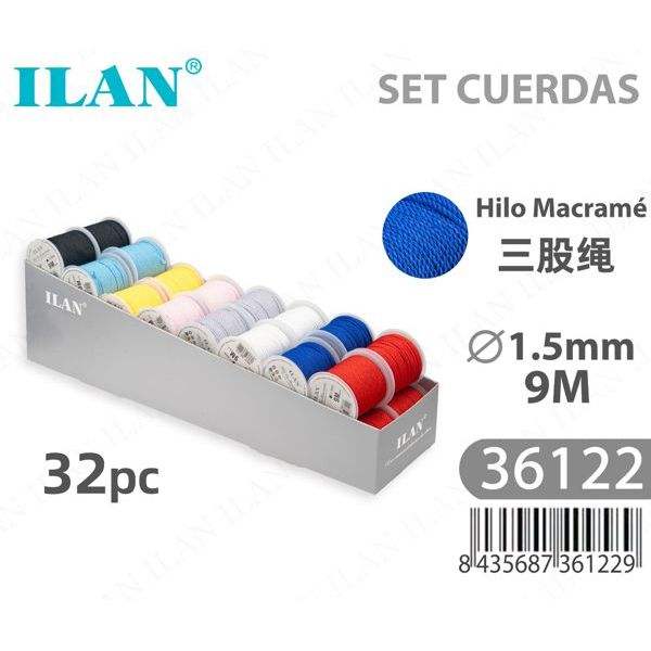 Corda per Macramè Ilan 1.5mm 9m Set da 32 Pezzi Multicolore Filo per Artigianato