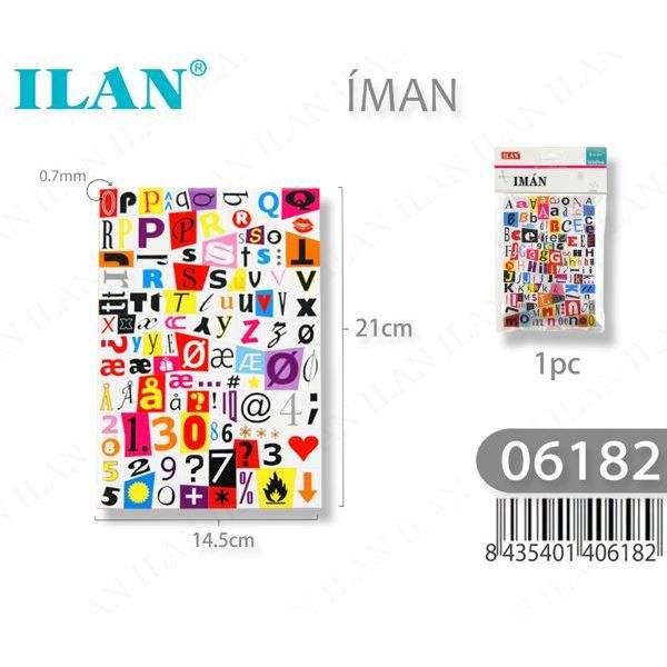 Foglio magnetico Ilan 14,5x21 cm, lettere, numeri e simboli colorati per artigianato e decorazioni fai da te