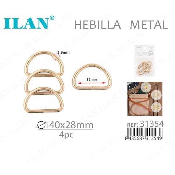 Fibbia in metallo Ilan 40x28mm, 4 pezzi, anello a D per borse e artigianato