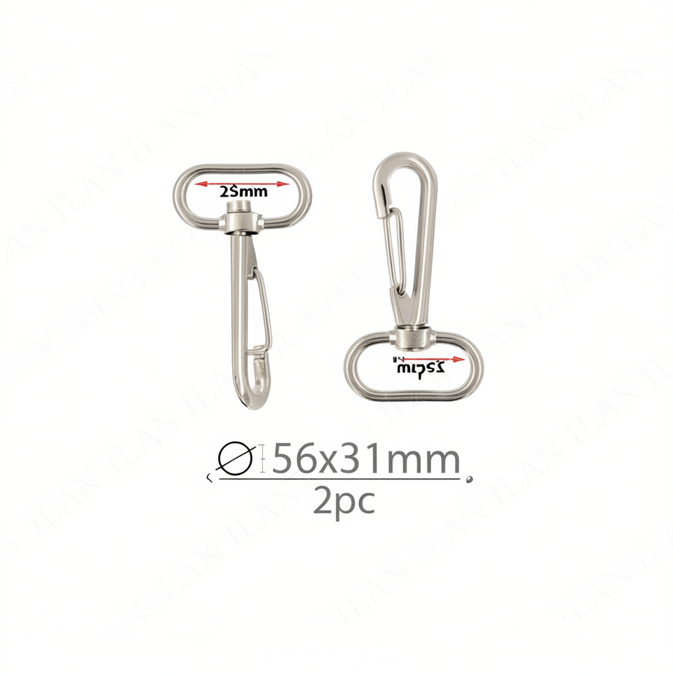 Moschettone in metallo ILAN 56x31 mm per accessori da cintura, 2 pezzi