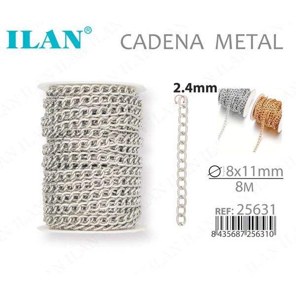 Catena in Metallo Ilan 8x11mm 8M Colore Argento per Creazione di Gioielli