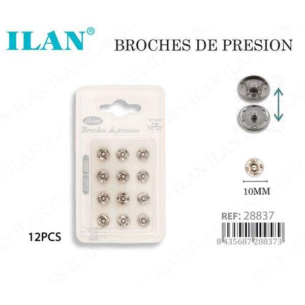 Bottoni a pressione in metallo Ilan da 10 mm, 12 pezzi, per abbigliamento