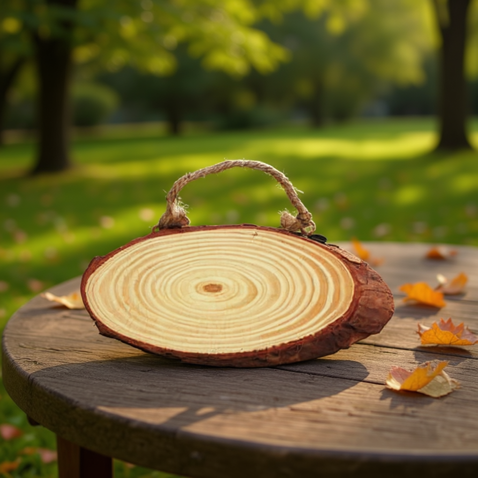 Targa in legno naturale Ilan, diametro 25 cm, con manico in corda, per uso decorativo