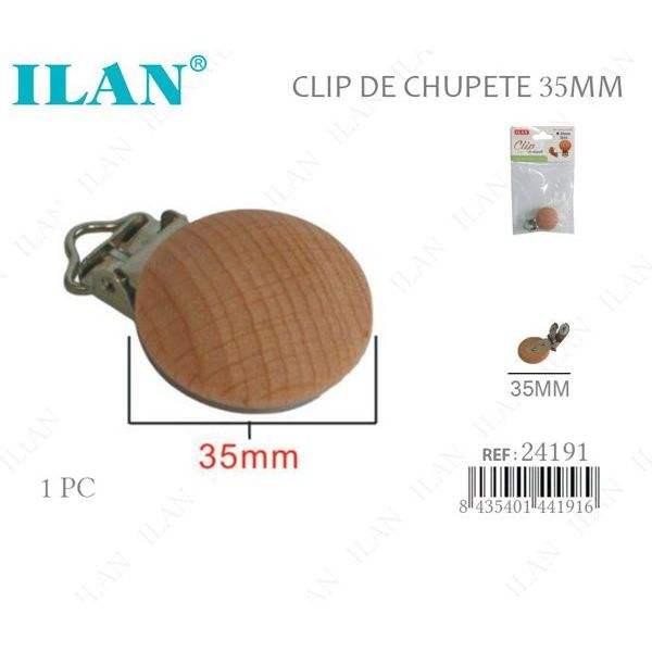 Clip per Ciuccio Ilan 35Mm in Legno Rotondo Accessorio per Neonati