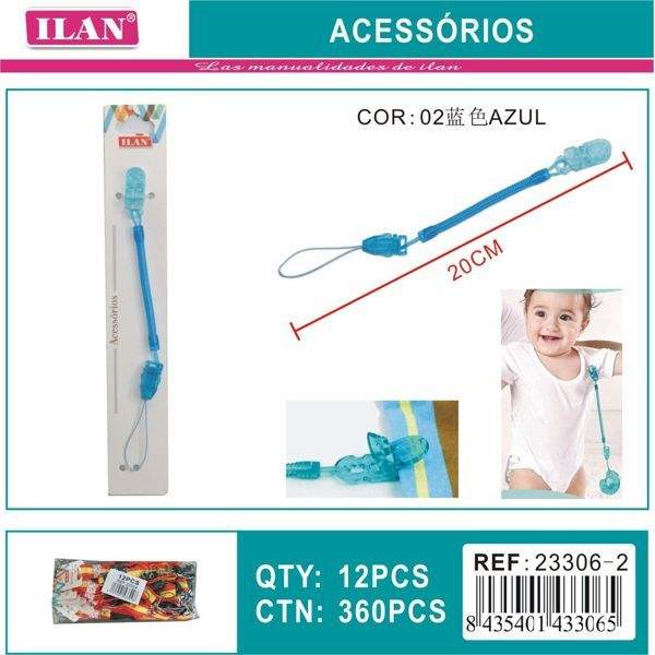 Cordino per ciuccio Ilan blu 20 cm modello a molla per neonati