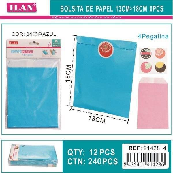 Sacchetti di carta Ilan 13x18 cm 8 pezzi blu con adesivi per regali per feste