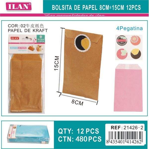 Sacchetti di carta Ilan 8x15 cm 12 pezzi Kraft marrone per artigianato e regali