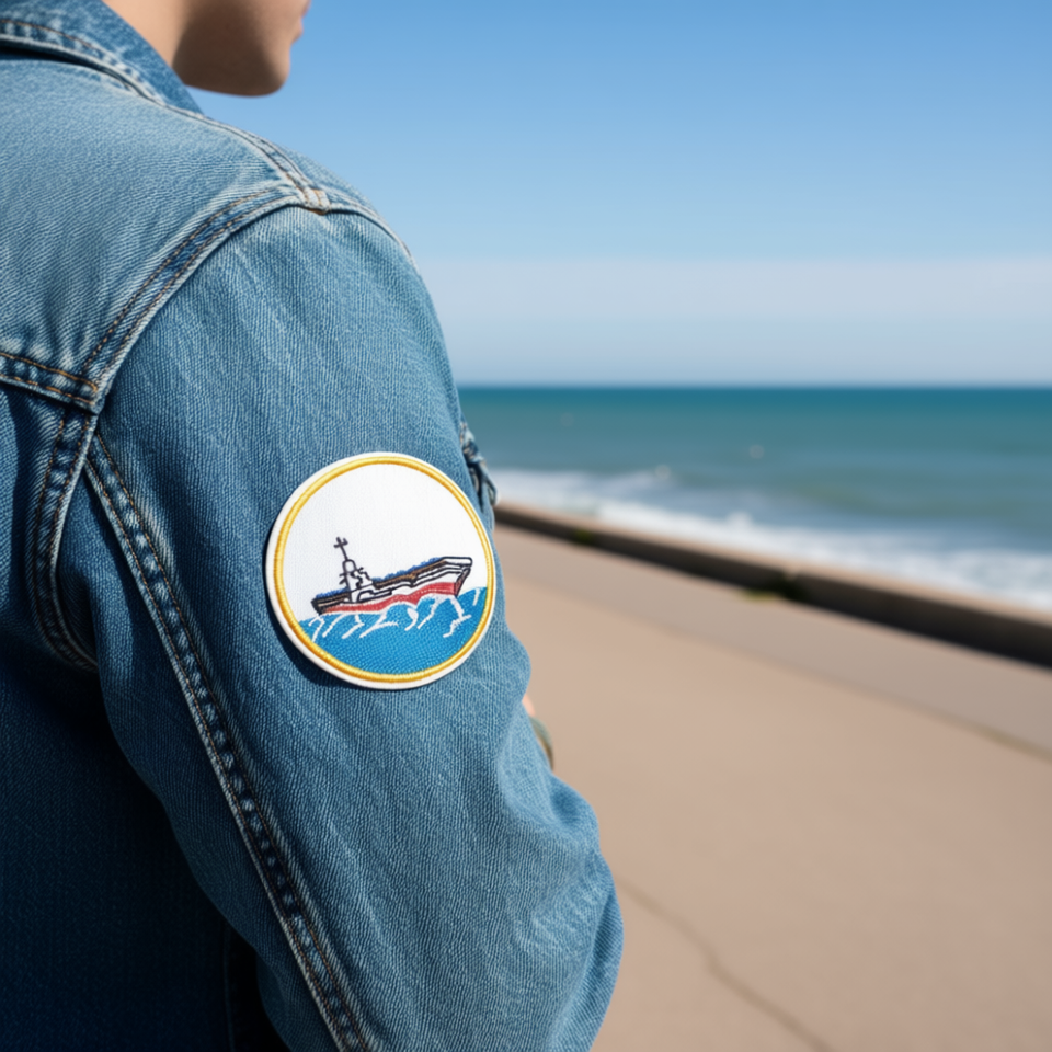 Patch Ilan 7x7 cm con disegno di nave ricamato termoadesivo