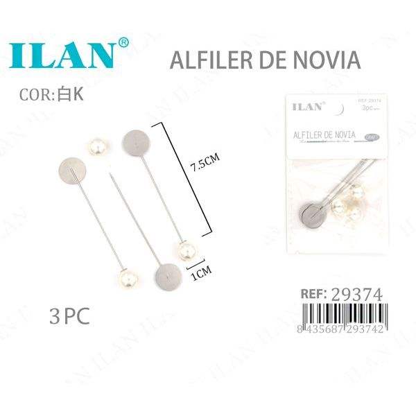 Spilla di perle Ilan per la sposa 7,5 cm bianca K 3 pezzi
