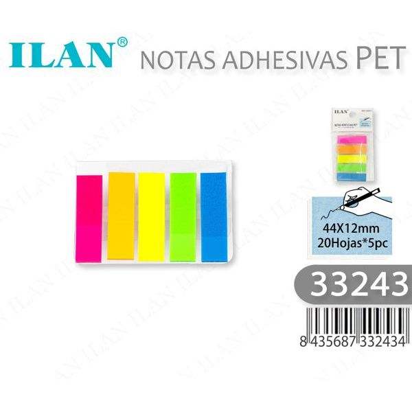 Ilan Pet Sticky Notes 44x12mm Colori Fluorescenti 20 Fogli 5 Confezioni