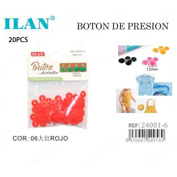 Bottoni a Pressione in Plastica Ilan 12mm Rosso Brillante 20 Pezzi per Abbigliamento