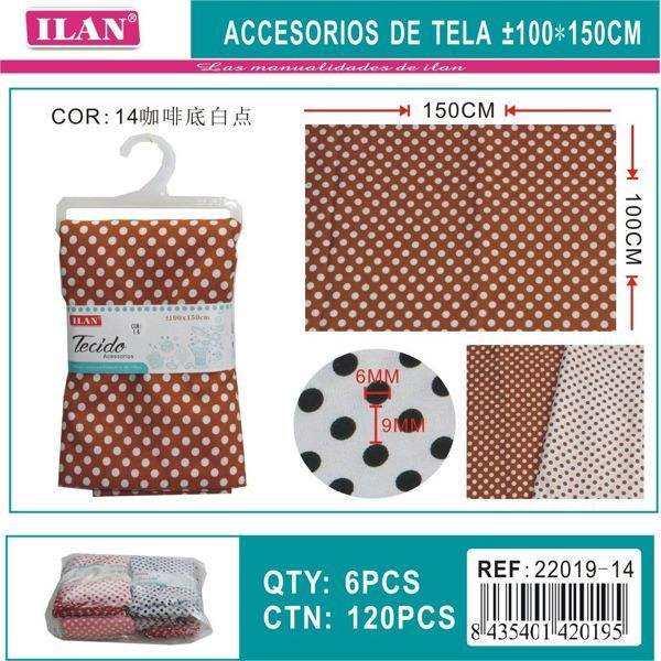 Tessuto a Pois Ilan 100x150 Cm, Puntini Bianchi su Sfondo Caffè, Decorazione per la Casa