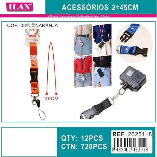 Cordino in poliestere Ilan 2x45 cm arancione per badge identificativo e fotocamera