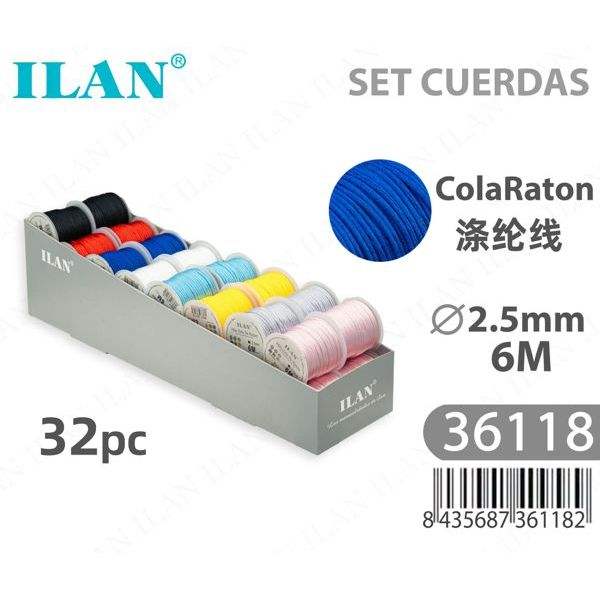 Corda a Coda di Topo in Poliestere Ilan 2,5 mm x 6 m, Set da 32 Pezzi ColaRaton