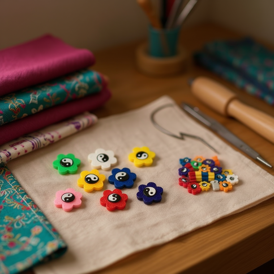 Perline in Argilla Polimerica Ilan 5x9mm con Motivo Tai Chi, Forma Piatta per Decorazione Abbigliamento