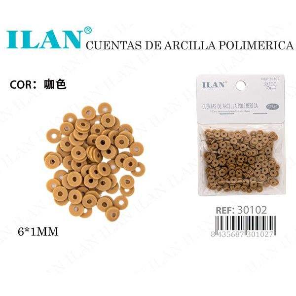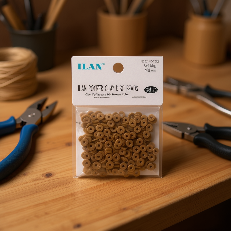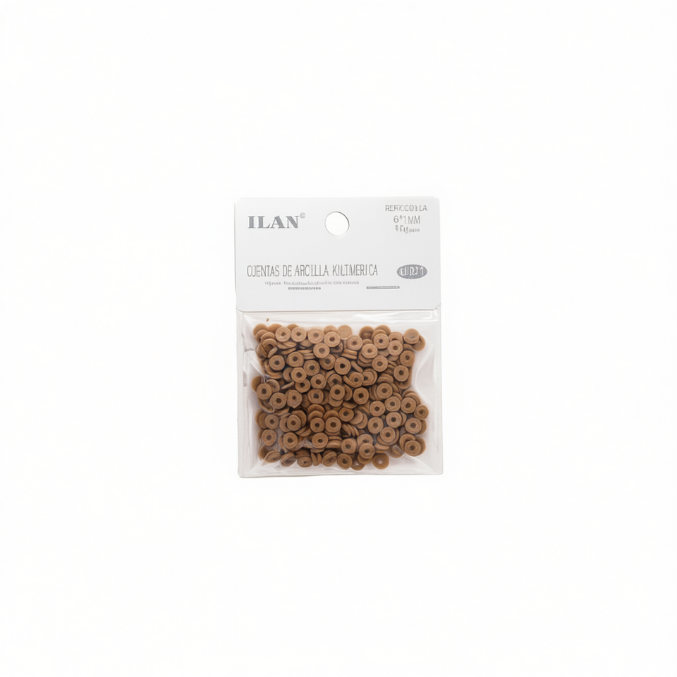 Perline a disco in argilla polimerica Ilan 6x1 mm colore marrone per creazione di gioielli artigianali