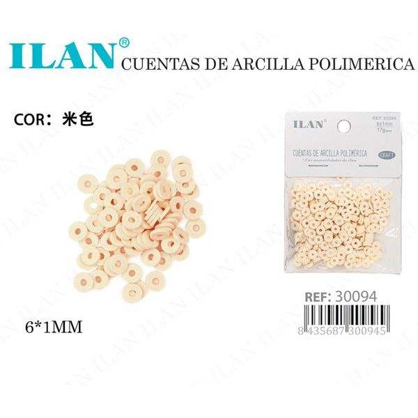 Perline piatte in argilla polimerica Ilan 6x1 mm beige per la creazione di gioielli