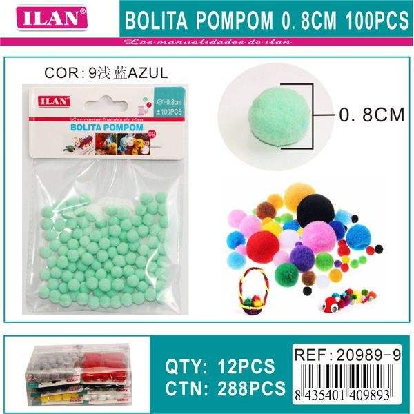 Palline Pom Pom Ilan 0,8 cm Azzurro Chiaro Materiali per Artigianato 100 Pezzi