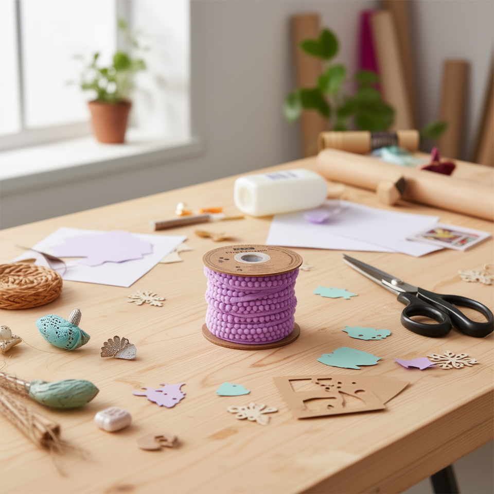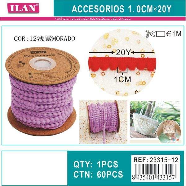 Nastro Ilan Pom Pom 1 cm x 20 iarde viola per artigianato e decorazioni