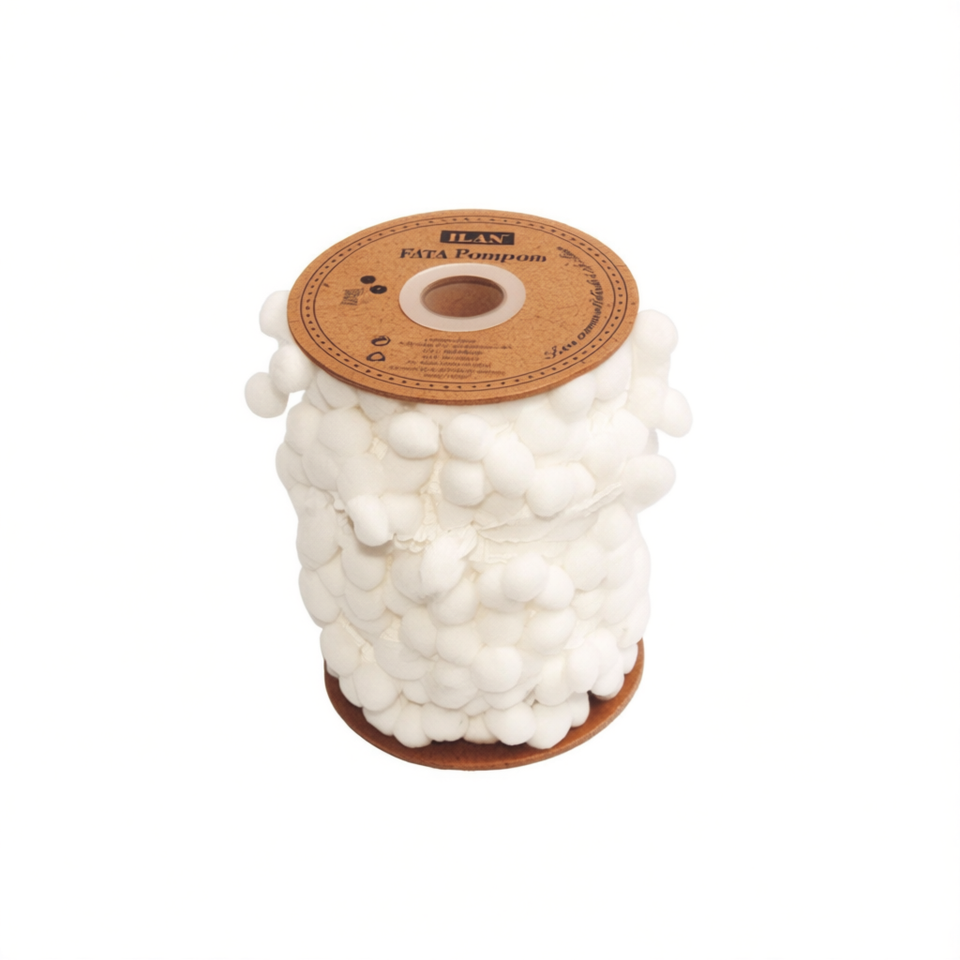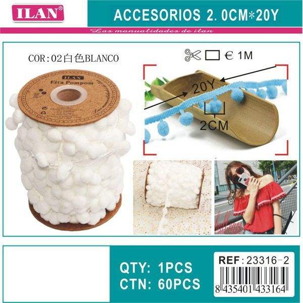 Passamaneria Ilan Pom Pom Larga 2.0 Cm Lunghezza 1 M Bianca Per Decorazione Gonne